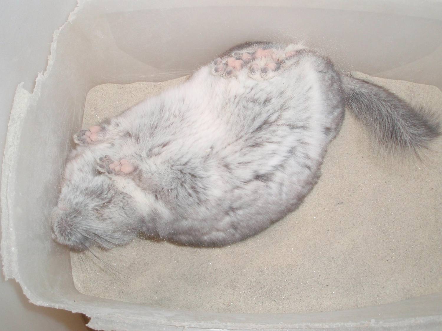 | eske, ага, надо будет заснять и разместить)) правд народ видео неохотно смотрит из-за большого размера файла)) так что представьте себе анимашку из этих двух фоток)) зверёк помещённый в ванночку с песком начинает сразу же в ней кувыркаться таким образом со скоростью один оборот в секунду))